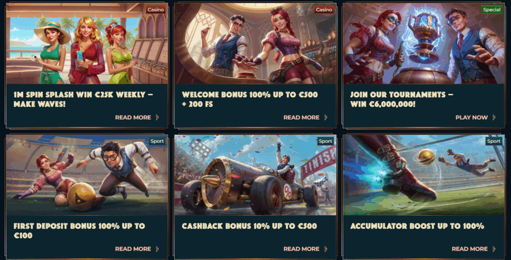 - Generous Welcome Offer: 100% deposit match up to €500 plus 200 free spins.