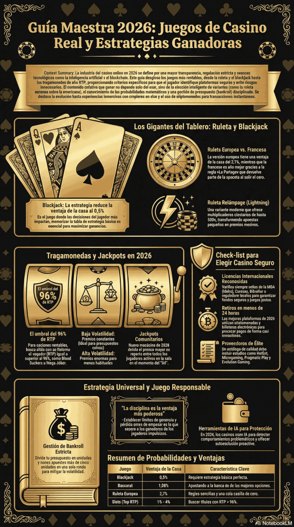 Juegos de Casino Real 2026 – Los que te hacen ganar dinero