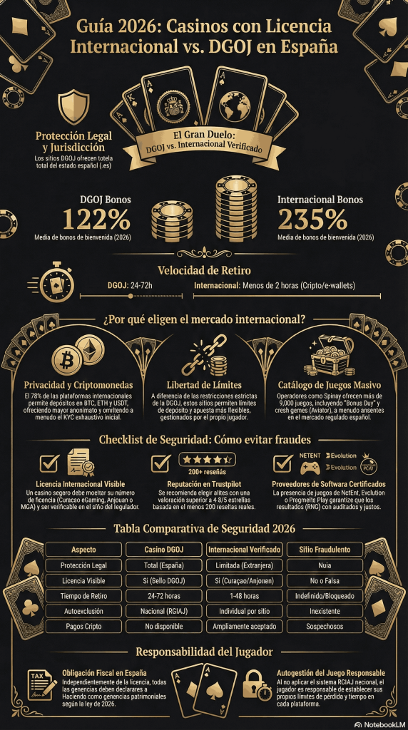| Aspecto | DGOJ | Internacional Verificado | Fraudulento Sin Licencia |